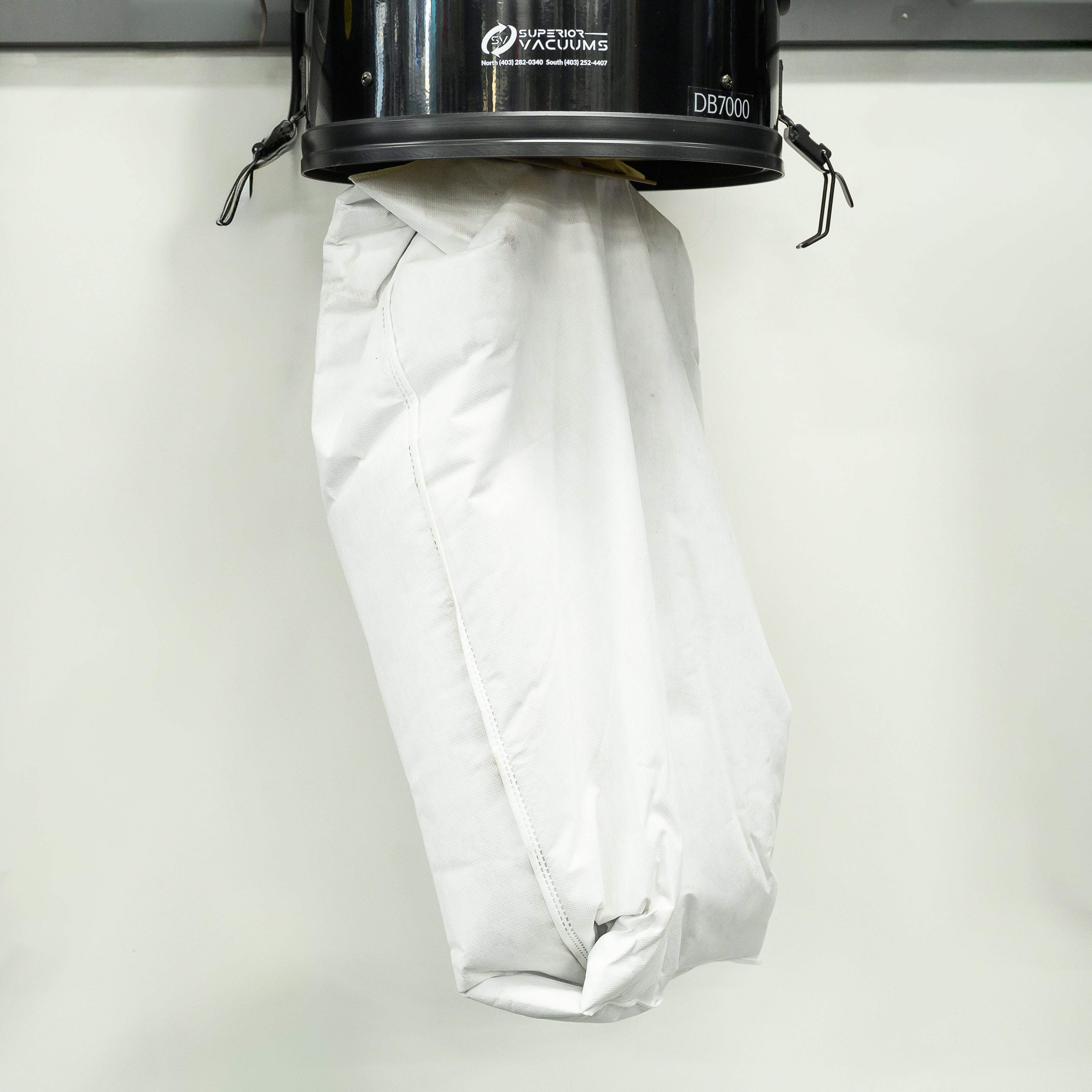The HP DB7000 Disposable Filter Bag central vacuum power unit is specifically designed for large homes up to 8,000 Sq. Ft., providing a powerful and convenient cleaning solution for extensive spaces.