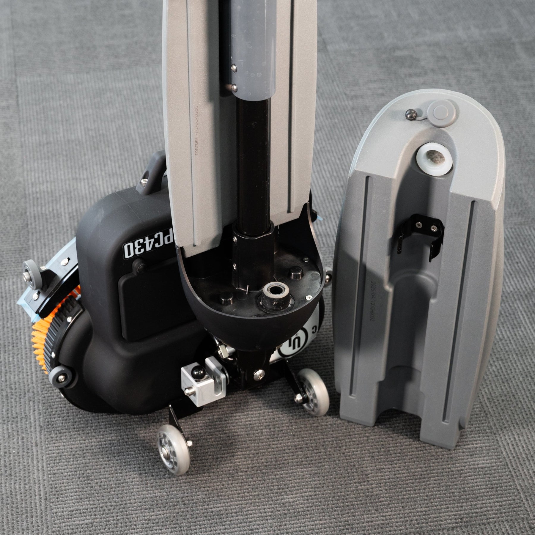 The Procare SPC430 Mini Floor Scrubber delivers powerful and compact cleaning performance with a 17.5-inch (450 mm) cleaning width and 800–1,000 m²/h (8,611–10,764 ft²/h) productivity. Designed for tight and hard-to-reach spaces, it features double counter-rotating brushes, a 3.2 L (0.85 gal) clean water tank, and a 6.5 L (1.7 gal) dirty water tank for extended operation. Powered by a 12V 8Ah lithium battery, it offers 1–1.2 hours of runtime with a quick 2-hour full charge, making it ideal for frequent daily cleaning in confined areas.